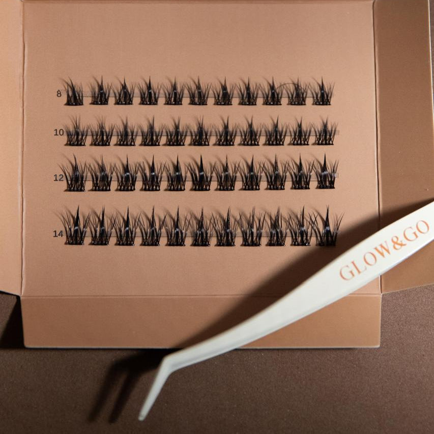Using tweezers, place clusters underneath your natural lashes.